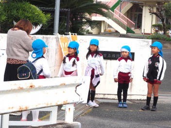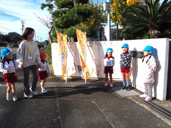 あいさつ週間3日目。あおぐみさんの大きな声に反応して、車の運転手さんもおじぎをしてくださいましたよ!