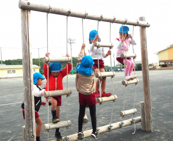 小学校の大きな遊具に大喜びのあおぐみさん!