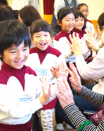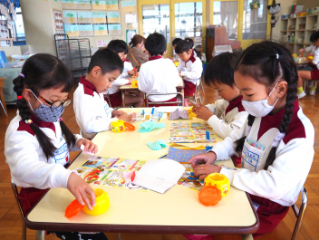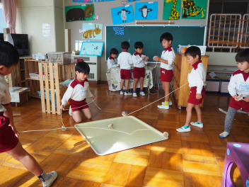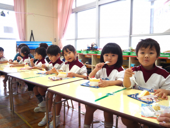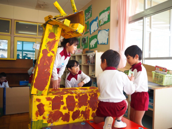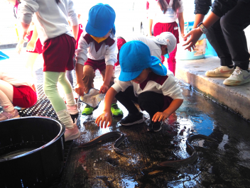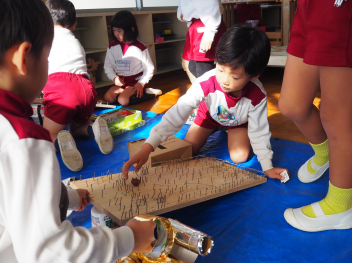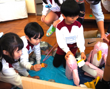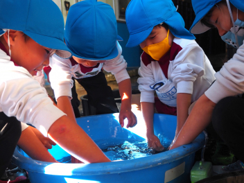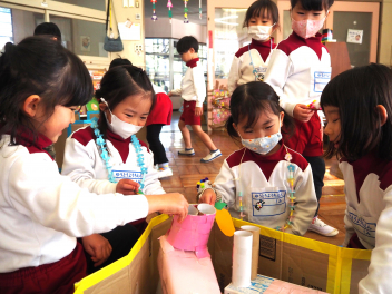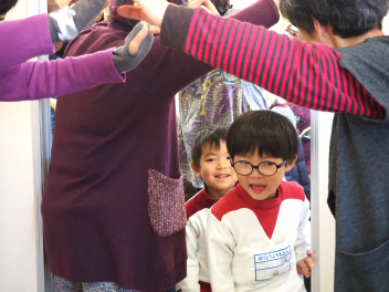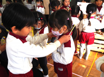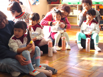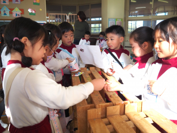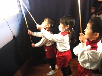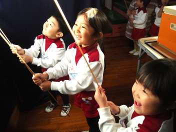 あかぐみさんも友達や先生とはぐれないように注意しながら、真剣にスモーク体験を行うことができました。