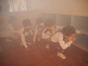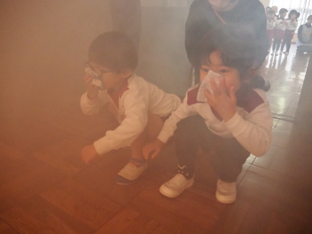 今日はスモーク体験と、火災の避難訓練を行いました。