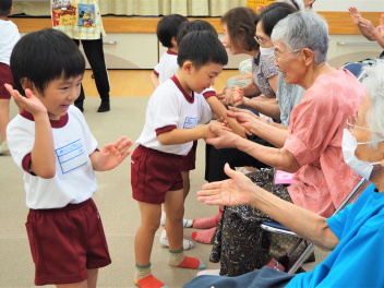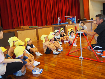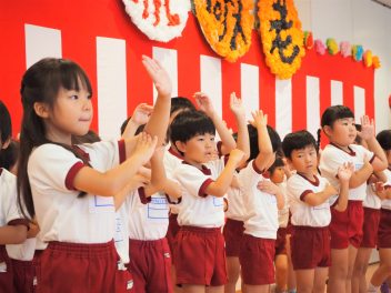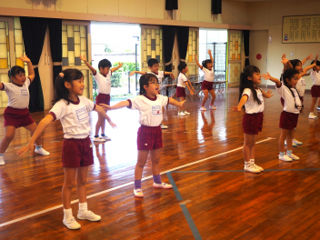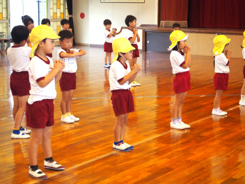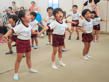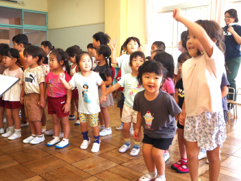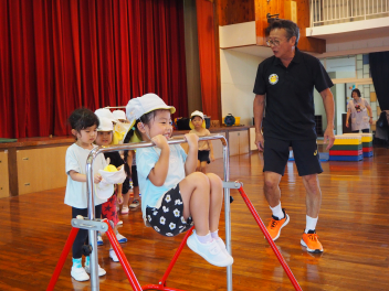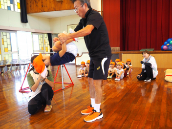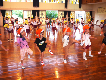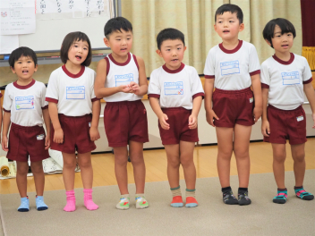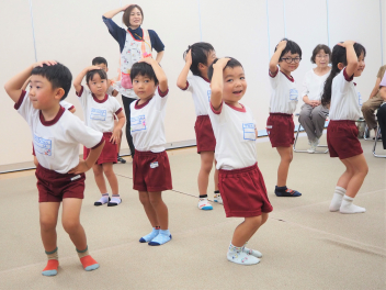 遊戯室に集まって「体操」をしました。最初のポーズ、かっこいいですね!