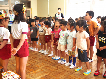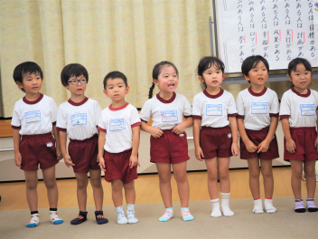 一人一人が頑張っている姿を、みんなの前で伝えました。友達からたくさんの拍手をもらえて嬉しそうでした