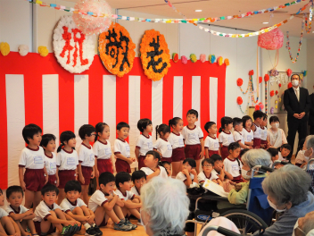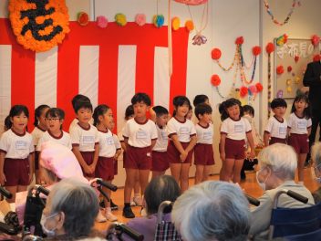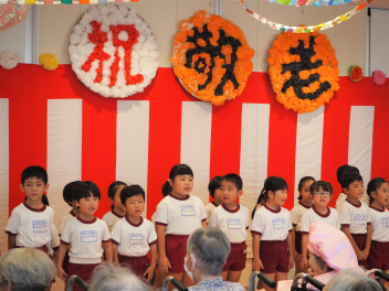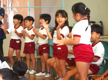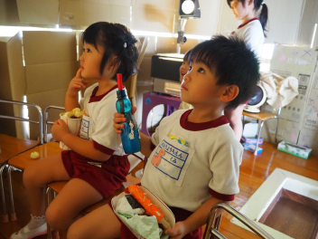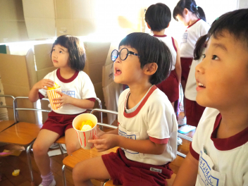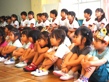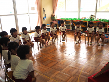 「今から何が始まるのかな?」と、ドキドキしながら いい姿勢で椅子に座っているあか組さん。