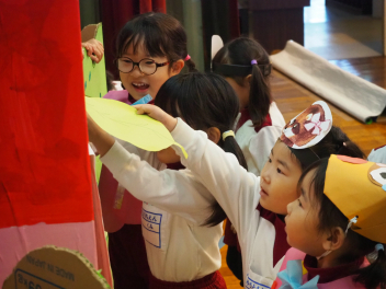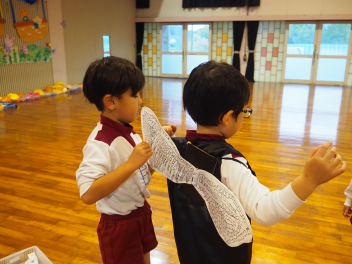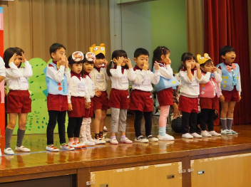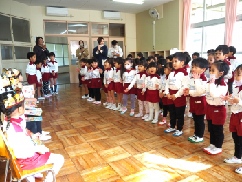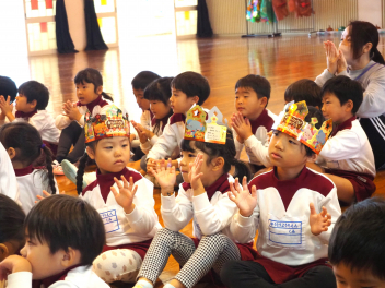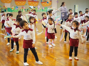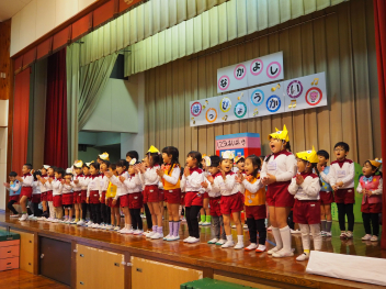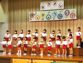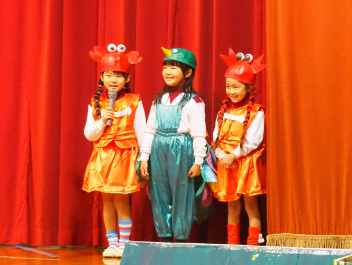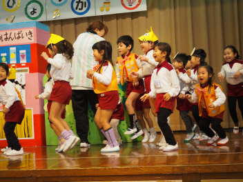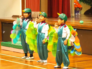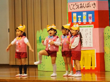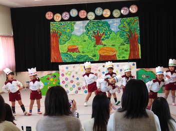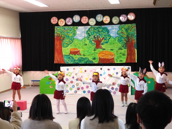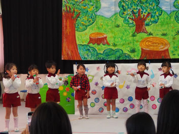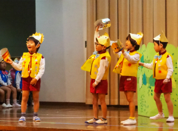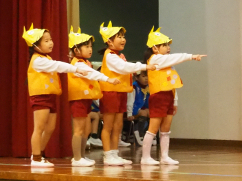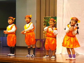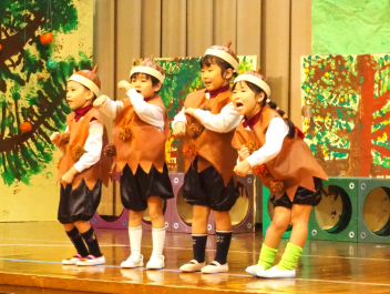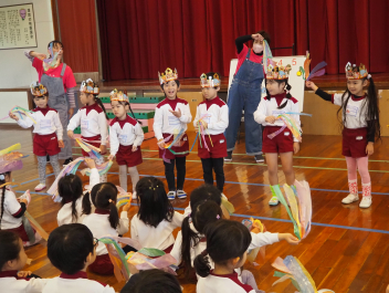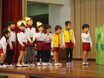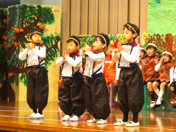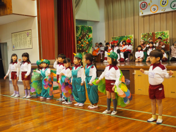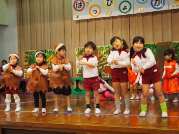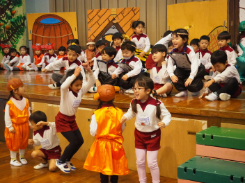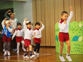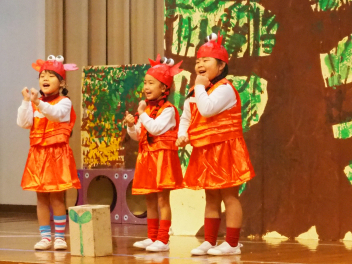 発表会のビデオを御家庭で見た子も多かったようで、他のクラスの劇の歌やセリフ、踊りなどを覚えている子もいました。