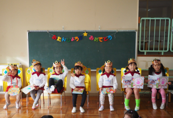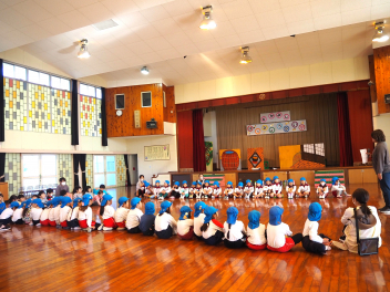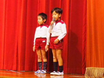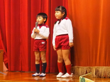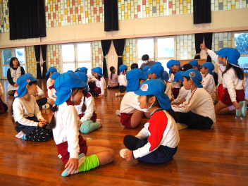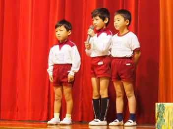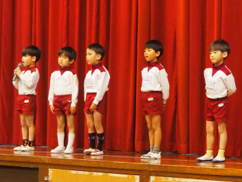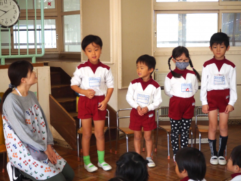 花育教室の後、遊戯室で発表会ごっこをしました。