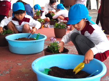 何の花の寄せ植えをしたか、お子さんに聞いてみてくださいね
