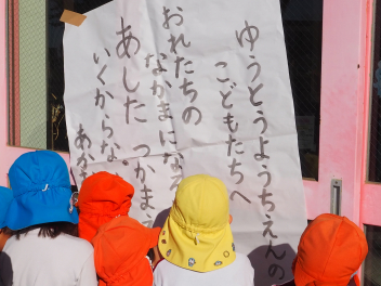 遊戯室前でオニからの手紙を発見