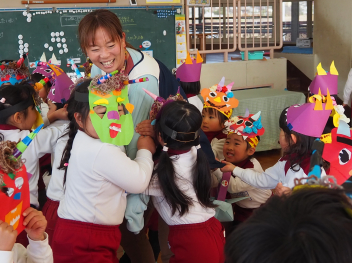 明日は豆まき会です。子供たちと一緒にドキドキワクワク楽しみたいと思います