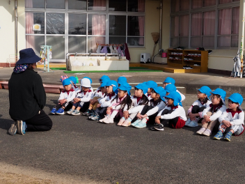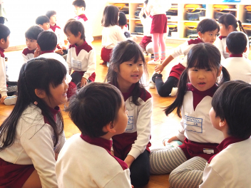園歌を3番まで歌ったり、3学期の楽しい行事や遊びについての話を聞いたりしました。