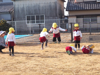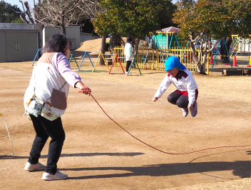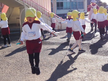 きいぐみさんは「縄跳び」に挑戦していました。コツをつかめるように頑張っていますよwink